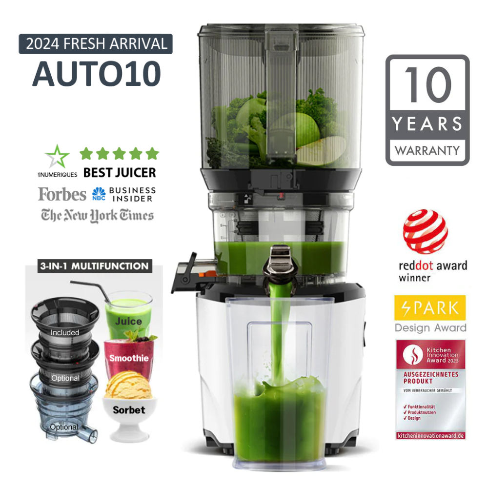 I like my Mini Max AUTO6 juicer so much as it's handy and easy to operate. This vertical masticating slow juicer is occupying less space than my previous horizontal slow juicer. It can hold more fruits & vegetables in the auto hopper which makes juicing a breeze. More juice is extracted with it's cold-pressed slow juicing function, packed with multivitamins and minerals. Very soothing to drink and easily digested. Love this juicer!