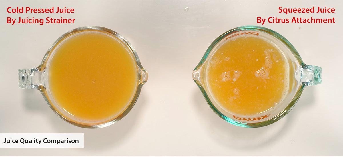 It saves time when making large quantities of citrus juice, and improves the yield. See the citrus attachment in action here: