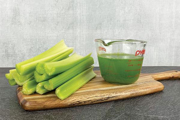 12 celery sticks (each 6 inches long) = a little over 1 cup of celery juice.