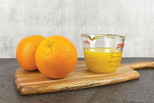 2 large navel oranges (peeled) = a little over 1 cup of orange juice.