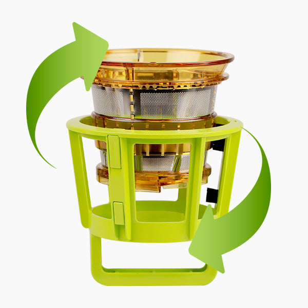 You can easily clean up trace residues in the juice strainer. Put the rotating cleaning brush and the juice strainer together and twist them against each other.